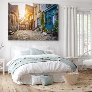 - Tento obraz zobrazuje malebnú ulicu s kamennou dlažbou, obklopenú pôvabnými domami a osvetlenú slnečnými lúčmi. Je to perfektný doplnok do každého interiéru, ktorý prináša harmóniu a nostalgiu.