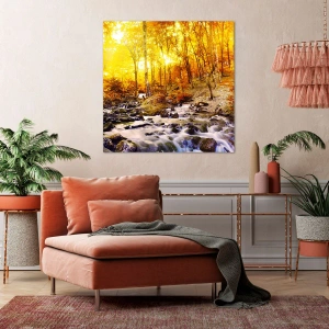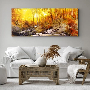 - Tento obraz zobrazuje jesenný les s potokom obklopeným zlatými listami. Malebná a harmonická kompozícia, ktorá prináša do interiéru pokoj a čaro prírody.