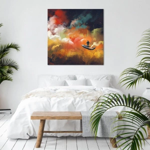 - Obraz zobrazuje postavu v loďke na pozadí rozmarných, farebných oblakov. Je ideálny do moderných interiérov, prináša inšpiráciu a mágiu.