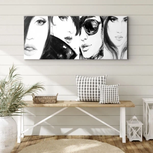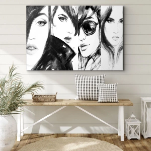 - Obraz zobrazuje štýlové portréty žien v monochromatických tónoch, ktoré zdôrazňujú eleganciu a expresivitu. Je ideálny do moderných interiérov.