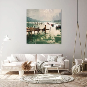 - Malebný prístav s loďkami pohupujúcimi sa na pokojných vodách, obklopený príjemnou atmosférou harmónie a pokoja. Ideálne na zdobenie moderných interiérov.