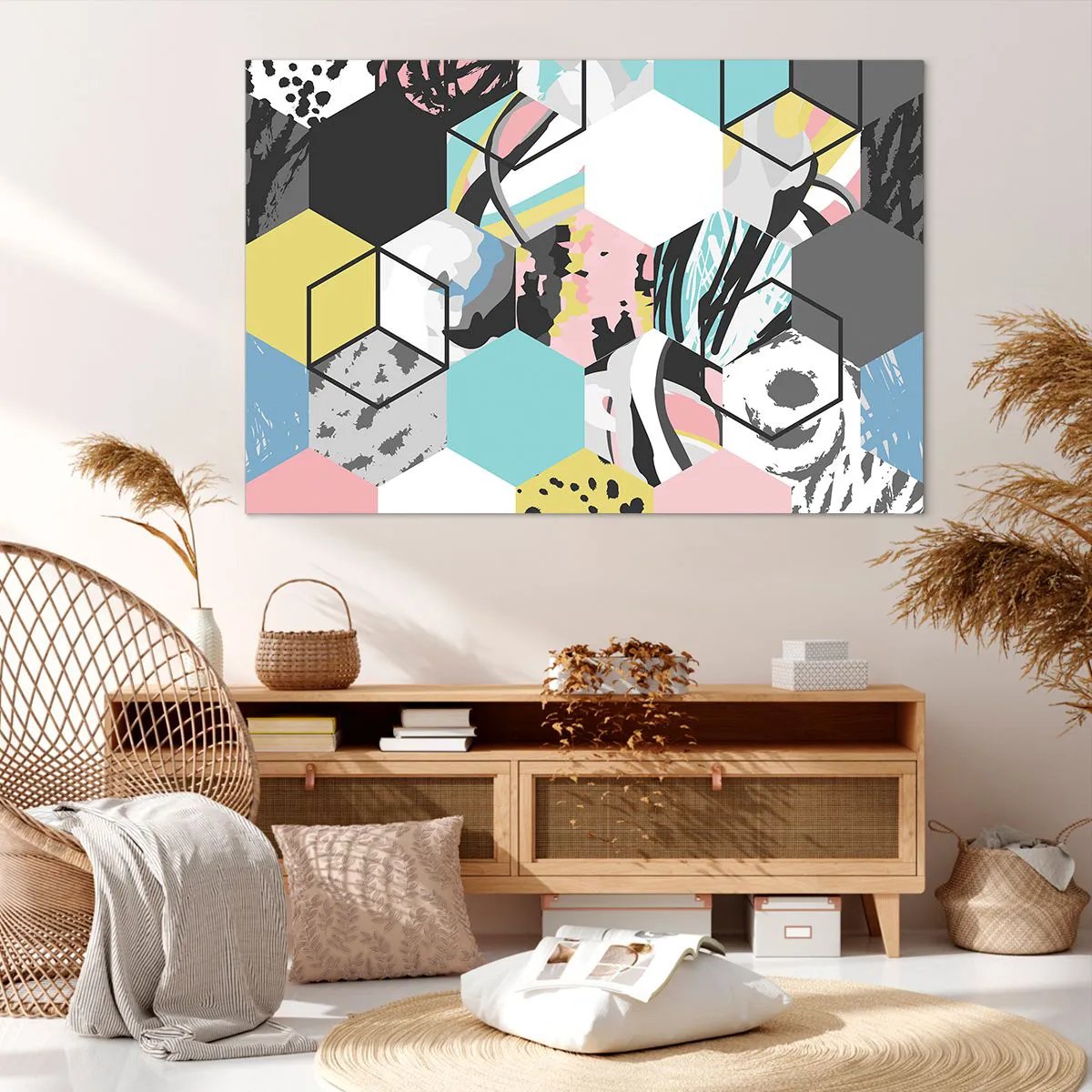 Obraz na plátne - Šesťuholníky a kocky v šiestich farbách - 120x80 cm