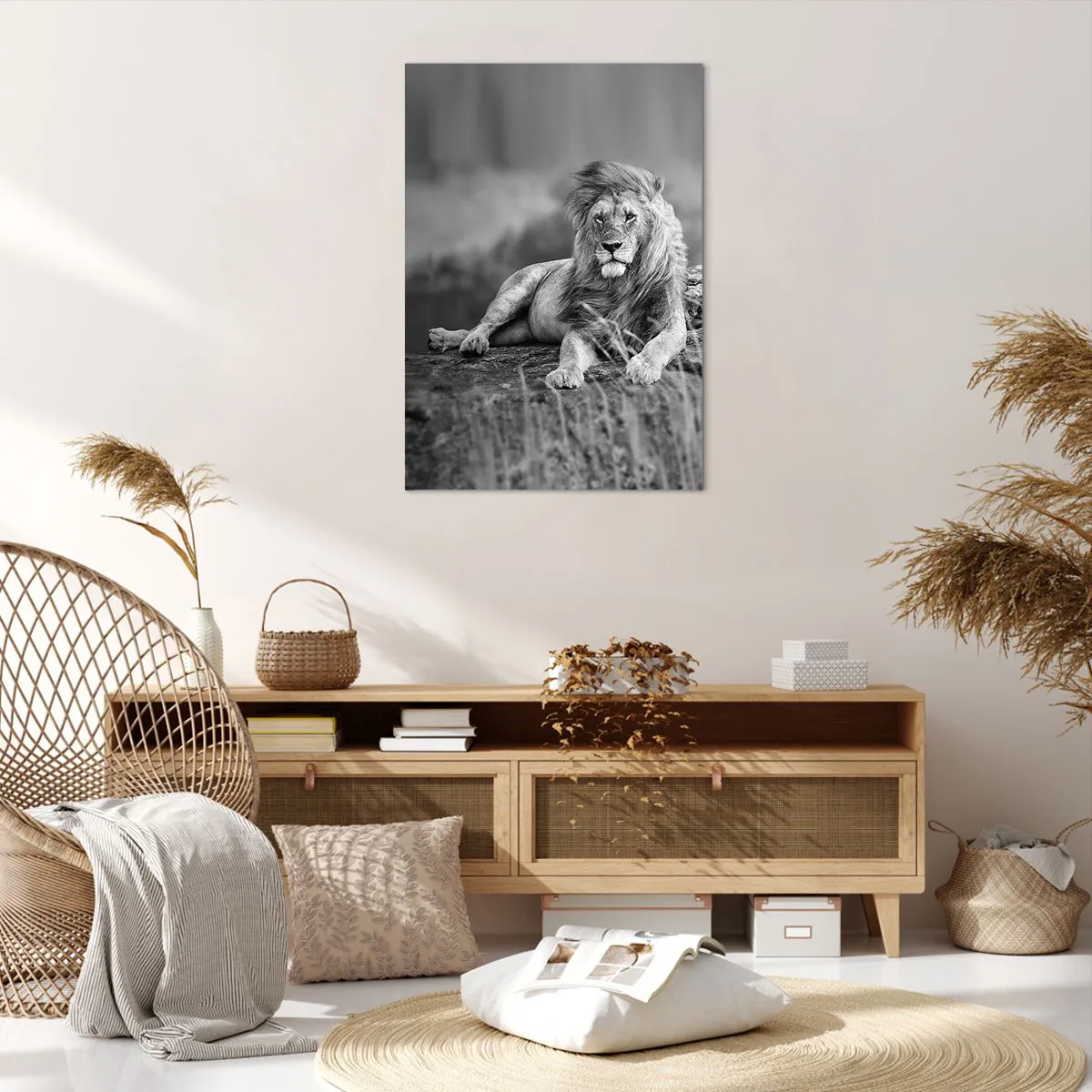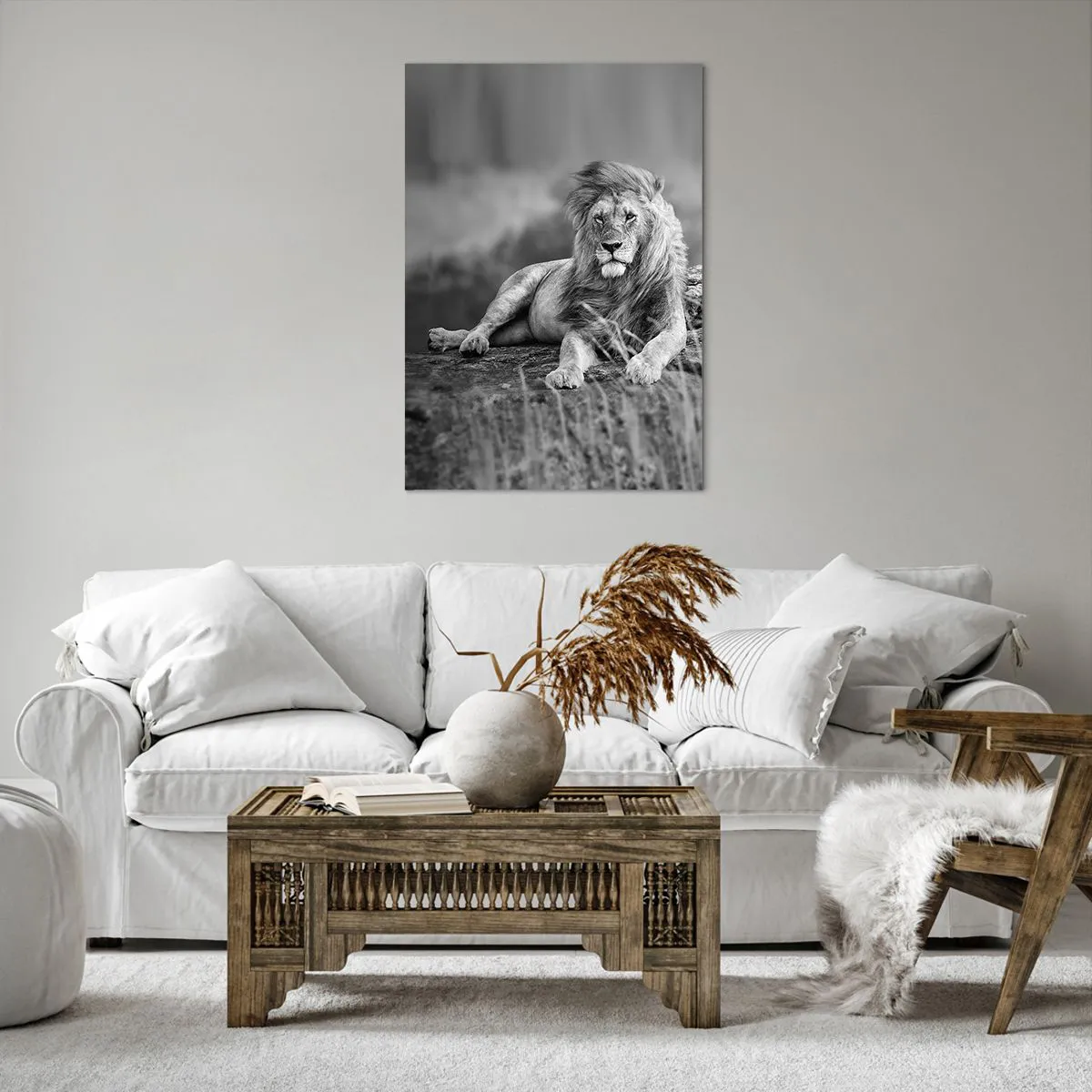 • Lev, zvieratá, príroda, Afrika, Čierna a biela, Príroda, Zvieratá, Do kancelárie, Do pracovne, Do jedálne, Do predsiene, Do obývačky, Do spálne, Šedá, čierna a biela, Zvislý