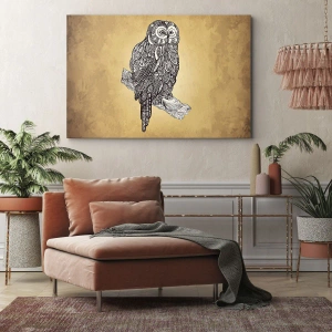 Motív sovy, ako symbol múdrosti a tajomstva, v kombinácii s ornamentálnym štýlom vytvára dielo, ktoré priťahuje pohľad a inšpiruje. Vďaka minimalistickým farbám a sofistikovanému dizajnu sa tento obraz dokonale hodí do rôznych interiérov, ako sú moderné, vintage a klasické aranžmány.