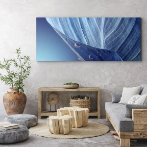 - Tento obraz zobrazuje detaily modrého listu ozdobeného kvapkami vody. Elegantná a minimalistická dekorácia, ktorá prináša prírodnú krásu a pokoj do každého interiéru.