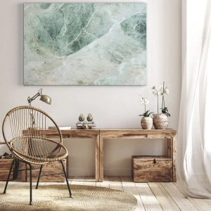 Obraz na plátne - Zelený mramor s jemnými bielymi žilami - 70x50cm - Vznešený chlad kameňa - Moderná nástenná dekorácia do obývacej izby a spálne ARTTOR