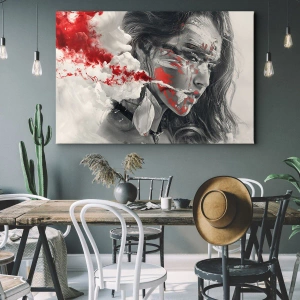 • Abstrakcia, Ženská Tvár, Portrét ženy, Ľudia, móda, umenie, Do kancelárie, Do pracovne, Do jedálne, Do predsiene, Do obývačky, Do spálne, , Červená, šedá, Panoramatický