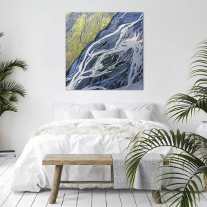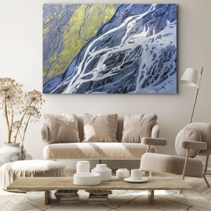 • Obraz zobrazuje abstraktný pohľad na kľukaté riečne dna zhora, vykreslený v harmonických odtieňoch prírody. Elegantná a moderná dekorácia.