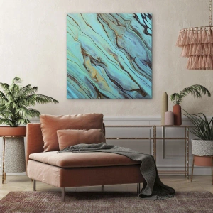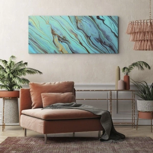 Plátno „Tyrkysový príliv“ je jedinečná dekorácia, ktorá priťahuje pozornosť svojou originalitou a umeleckým štýlom. Tyrkysové vlny sa prepletajú s jemnými akcentmi zlatej farby a vytvárajú kompozíciu plnú dynamiky a harmónie. Jemné farebné prechody dodávajú obrazu ľahkosť a eleganciu.