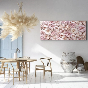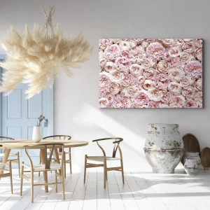 Plátno „Ružový záhon“ je jedinečná dekorácia, ktorá spája krásu prírody s jemnou eleganciou. Kompozícia z mnohých ruží v pastelových odtieňoch ružovej vypĺňa celú plochu obrazu a vytvára harmóniu a romantický charakter.