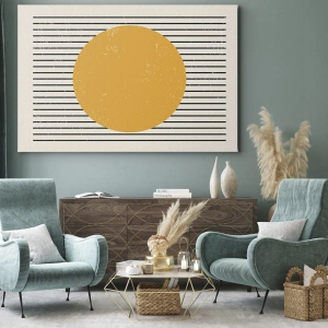 Nástenný obraz - Sila jednoduchosti - Žltý kruh na pozadí čiernobielych vodorovných čiar