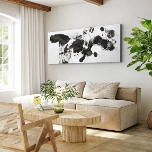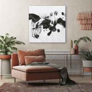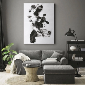 • Obraz zobrazuje abstraktnú kompozíciu čiernych škvŕn na bielom pozadí, čím vytvára výrazný kontrast a rovnováhu medzi chaosom a harmóniou. Dokonale dopĺňa moderné priestory a dodáva im dynamický a umelecký nádych.