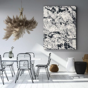- Obraz s dynamickou abstraktnou kompozíciou v čiernobielej farbe, vytvárajúci jedinečný kontrast, ideálny do moderných interiérov.