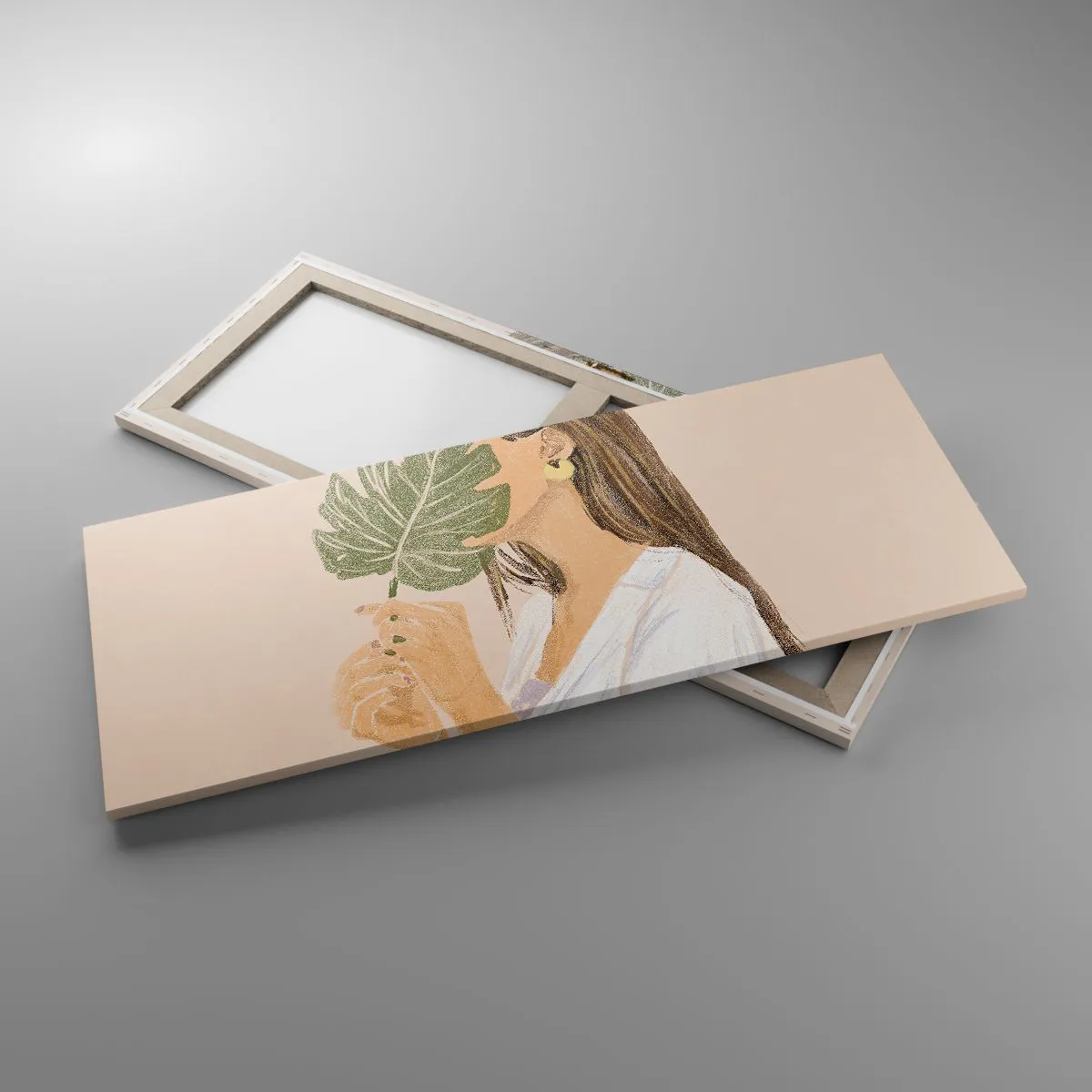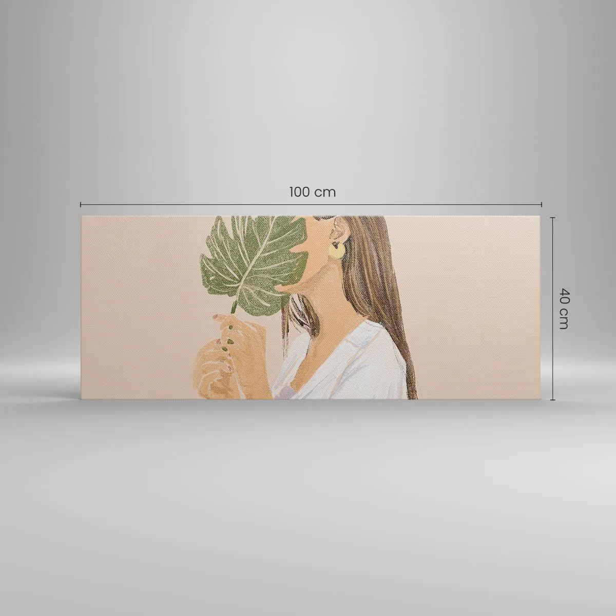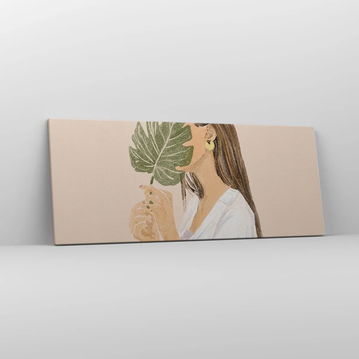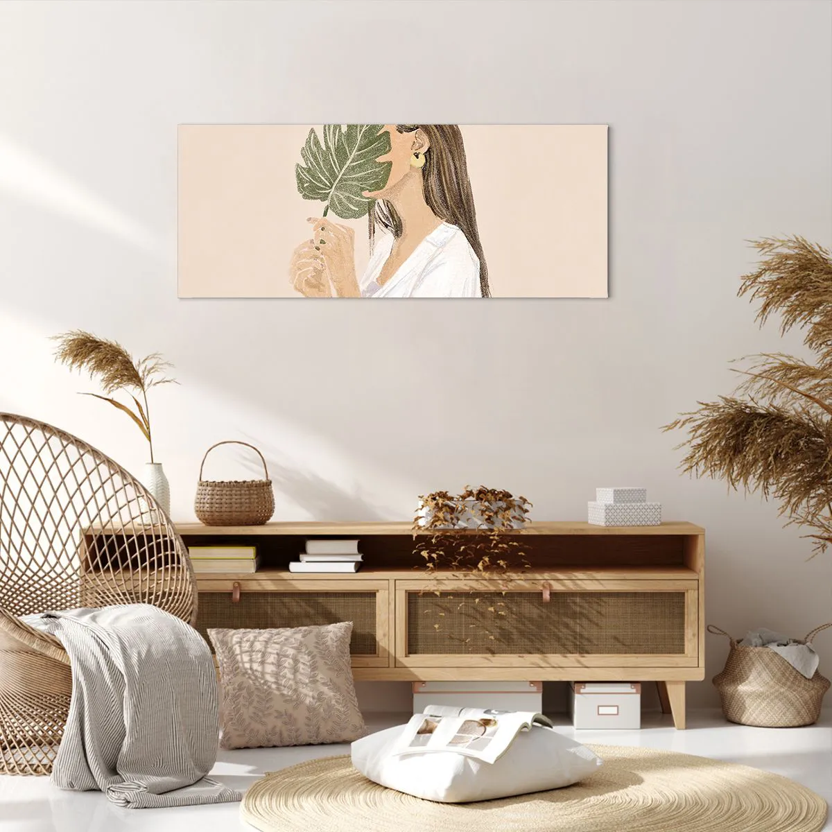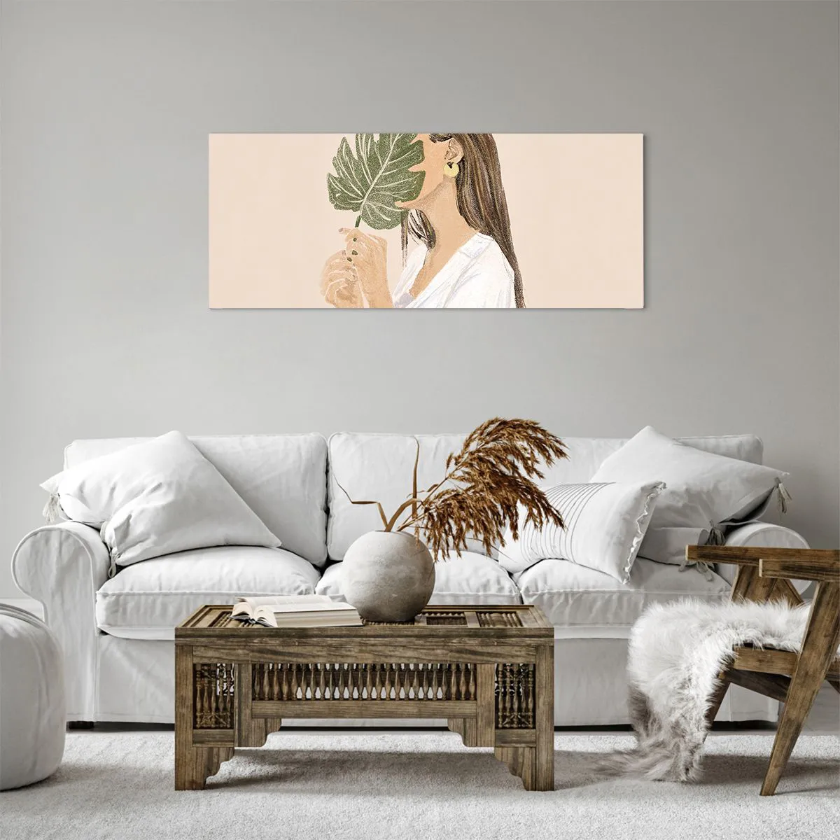 Obraz na plátne - Tajomný portrét s vejárom - 100x40 cm
