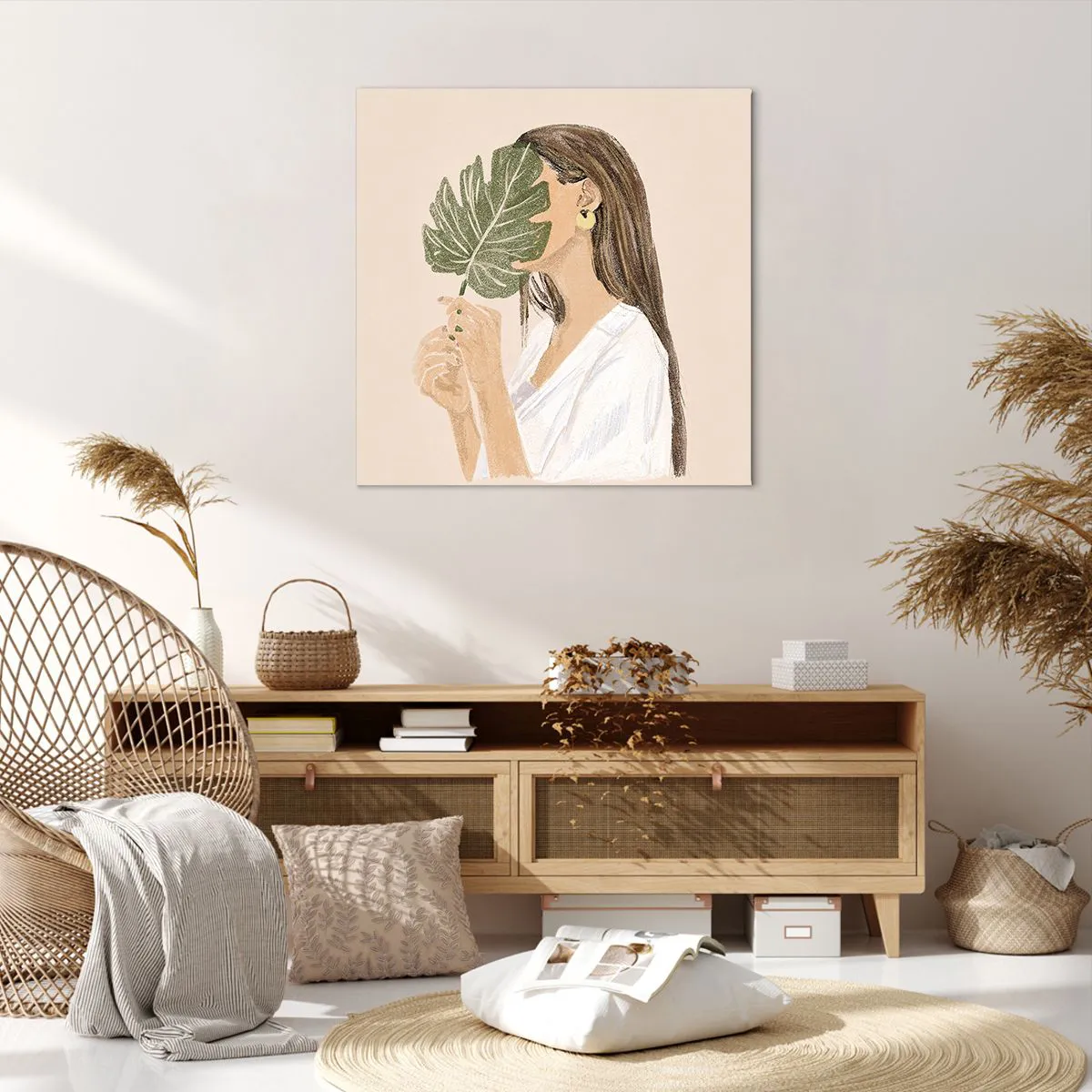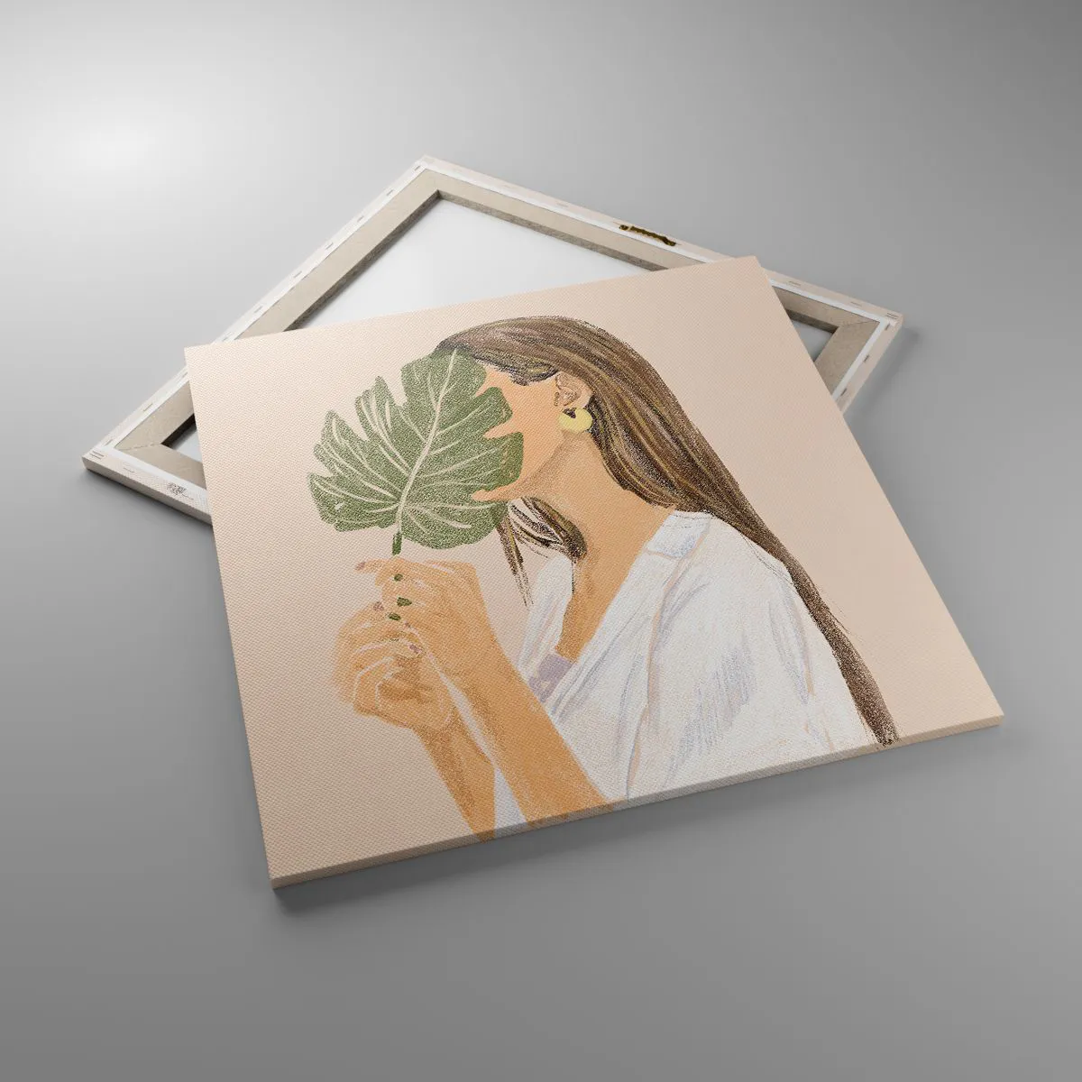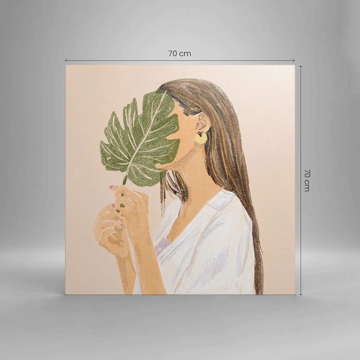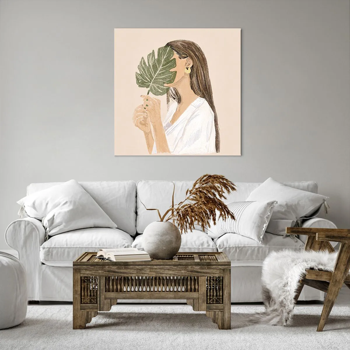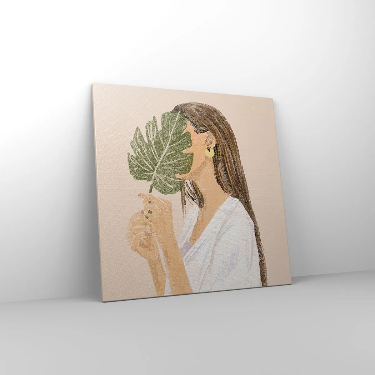 Obraz na plátne - Tajomný portrét s vejárom - 70x70 cm