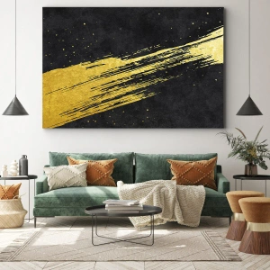 Nástenné umenie - Skok do hyperpriestoru - Čierne pozadie s dynamickým zlatým ťahom štetcom