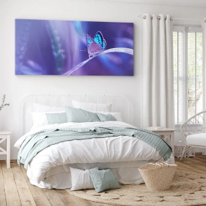 Nástenné umenie - Klenot prírody - Jemný modrý motýľ na stonke vo fialovom svetle
