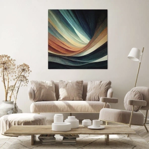 - Tento obraz zobrazuje abstraktné vlny v teplých a studených tónoch. Moderný a harmonický motív, ideálny do interiérov, ako sú obývačky, kancelárie alebo spálne.