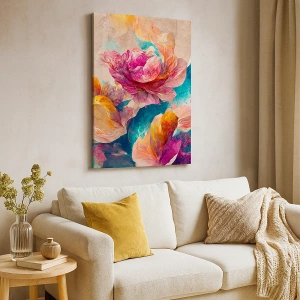 Kombinácia pastelových a žiarivých farieb vytvára harmonickú kompozíciu, ktorá sa dokonale hodí do obývačiek, spální alebo priestorov inšpirovaných prírodou. Obraz prináša teplo a eleganciu a slúži ako efektná nástenná dekorácia.