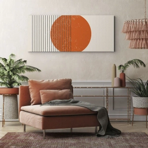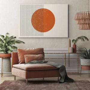 Motív slnka symbolizuje život, energiu a harmóniu. Oranžové odtiene a jemné geometrické línie zdôrazňujú eleganciu kompozície a dodávajú jej univerzálny charakter. Je to perfektná voľba pre tých, ktorí si cenia nástenné dekorácie, ktoré do izieb vnášajú jednoduchosť a sofistikovanosť.