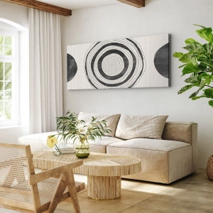 Obraz, vytvorený na vysoko kvalitnom plátne, zaručuje trvácnosť a hĺbku monochromatických farieb. Kontrast medzi čiernou a bielou zdôrazňuje jasnosť kompozície a zároveň prináša pokoj a rovnováhu. Geometria kruhov dodáva interiéru moderný a štýlový charakter.