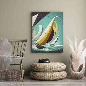 Vďaka intenzívnym odtieňom tyrkysovej a žltej farby obraz púta pozornosť a perfektne funguje ako dekoratívny ústredný bod. Plachtenie ako hlavný motív robí tento obraz ideálnym pre milovníkov námorníckeho štýlu a tých, ktorí oceňujú súčasné umenie.