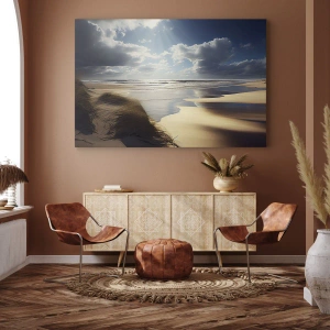 - Obraz zobrazuje divokú pláž s dunami a modrou oblohou, obklopenú prírodnou krásou. Je to ideálna voľba pre tých, ktorí si cenia pokoj a harmonickú krajinu.