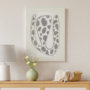 - Moderný obraz s abstraktným, organickým vzorom v odtieňoch sivej. Ideálny do minimalistických interiérov, ktoré si cenia jemnosť a štýlovú jednoduchosť.