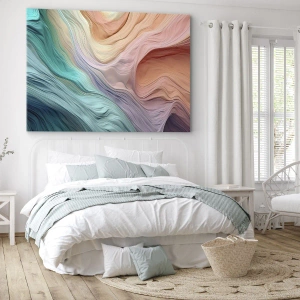 • Obraz s abstraktnými vlnami v pastelových a dúhových farbách. Elegantná a harmonická kompozícia, ideálna do moderných a minimalistických interiérov, prináša pocit pokoja a ľahkosti.