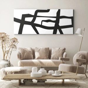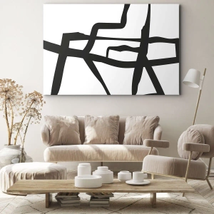 - Táto tlač na plátno sa vyznačuje minimalistickým čiernobielym vzorom s geometrickými líniami. Moderná dekorácia ideálna do interiérov s jednoduchým, no zároveň elegantným nádychom.