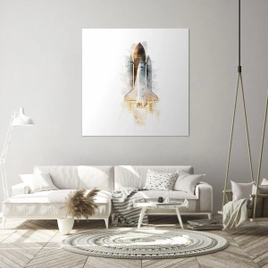 - Plátnový obraz s umeleckým akvarelovým spracovaním zobrazujúcim štart raketoplánu. Perfektný dekoratívny doplnok pre nadšencov vesmíru a moderné interiéry.