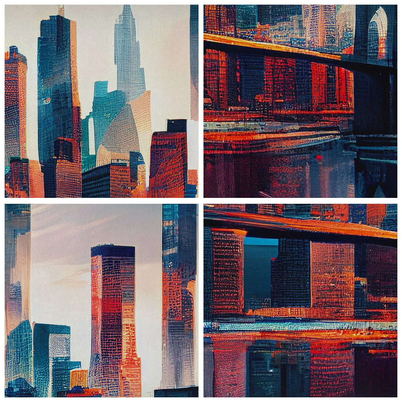 „Snový New York“ je plátno s rozmermi 70x50 cm, ktoré zachytáva mimoriadnu panorámu mesta. Jedinečný pohľad zobrazuje most a odraz mrakodrapov vo vode, čím vytvára harmonickú a dynamickú kompozíciu. Expresívne farby a detaily zdôrazňujú moderný štýl a dodávajú interiérom charakter a eleganciu.