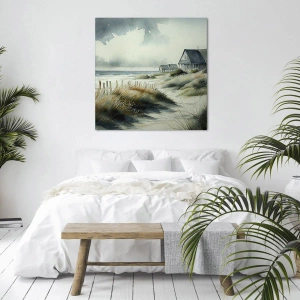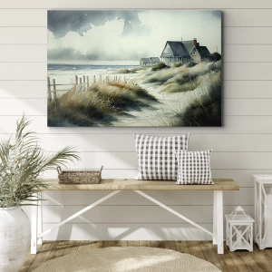 Motív obrazu vám umožňuje preniesť sa na pláž, kde zvuk vĺn a jemný vietor vytvárajú atmosféru pokoja a relaxácie. Dom obklopený prírodou evokuje spomienky na dovolenkové dni strávené pri mori. Kompozícia harmonicky spája krajinné prvky, ako je tráva, ploty a nekonečné more.