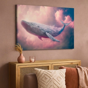 Obraz spája krásu prírody a fantastický svet fantázie a vytvára kompozíciu, ktorá poteší svojimi farbami a originalitou. Veľryba, majestátna a pôvabná, sa stáva symbolom snov a nekonečných možností, vznášajúc sa v jemných farbách oblakov.