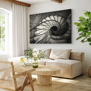 - Tento obraz zobrazuje čiernobiele točité schodisko v modernom štýle. Jedinečná a minimalistická kompozícia, ktorá prináša do interiérov eleganciu a harmóniu. Perfektný doplnok do priestorov s klasickým aj súčasným charakterom.