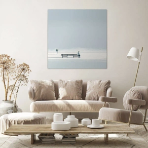 Obraz na plátne - Osoba sediaca na lavičke v minimalistickej krajine - 70x50cm - Áno, čakám. - Moderná nástenná dekorácia do obývacej izby a spálne ARTTOR