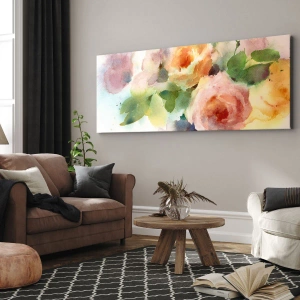 • Kvety, ruže, kytice, Botanika, kvety, pastel, Do kancelárie, Do pracovne, Do jedálne, Do kúpeľne, Do predsiene, Do obývačky, Do spálne, Oranžová, ružová, zelená, Štvorcový