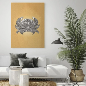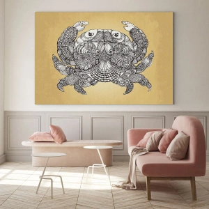 Motív kraba, hoci sa často spája s prírodou a morom, tu nadobúda jedinečný, takmer fantastický charakter. Táto umelecká interpretácia búra typické predstavy o morských tvoroch a predstavuje ich v úplne novom svetle. Toto dielo môže byť ústredným bodom dizajnu aj jemným akcentom pre milovníkov morskej inšpirácie a grafického umenia.