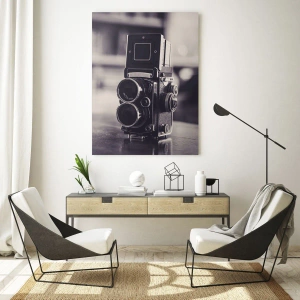 Sklenený obraz „Kúzlo starej fotografie“ je jedinečná dekorácia s nostalgickou estetikou, ktorá priťahuje pozornosť všetkých milovníkov klasických technológií a vintage štýlu. Ústredným bodom kompozície je starožitný fotoaparát s charakteristickými objektívmi, umiestnený na drevenom stole. Záber, zhotovený v čiernobielej farbe, zdôrazňuje kontrasty, štruktúru a emocionálny rozmer prezentácie.