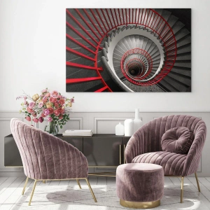 Motív točitého schodiska je v tomto prístupe symbolom nekonečna, pohybu a pokroku. Obraz sa perfektne hodí do moderných, industriálnych a loftových priestorov a dodáva mu dynamiku a hĺbku. Vďaka jasným líniám a kontrastným farbám je ideálnou voľbou pre kancelárie, obývačky, chodby a verejné priestory, ktoré potrebujú silný vizuálny akcent.