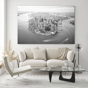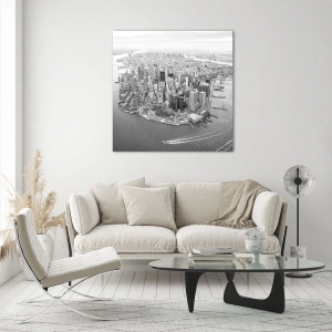 Obraz na skle - Pohľad na mesto z vtáčej perspektívy v čiernobielej farbe - 70x50cm - Ako nemilovať? - Moderná nástenná dekorácia do obývacej izby a spálne ARTTOR