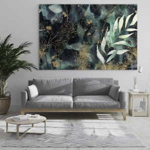 • Rastliny, listy, botanika, Botanika, fantázia, kvety, umenie, Do kancelárie, Do pracovne, Do jedálne, Do detskej izby, Do izby pre mládež, Do predsiene, Do obývačky, Do spálne, , Zelená, zlatá, Štvorcový