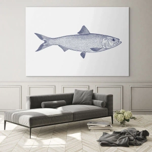 - Maľba zobrazuje precíznu skicu ryby vo vintage štýle na svetlom pozadí. Ilustrácia kombinuje minimalizmus s námorníckou estetikou a dokonale dopĺňa kuchyne, jedálne a priestory v škandinávskom štýle.