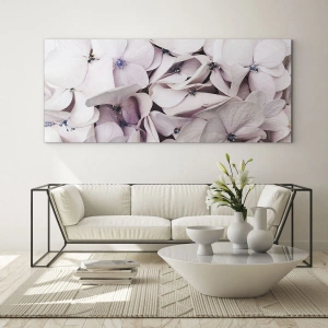 Obraz na skle - Jemné svetloružové hortenzie zblízka - 70x50cm - V záplave kvetov - Moderná nástenná dekorácia do obývacej izby a spálne ARTTOR