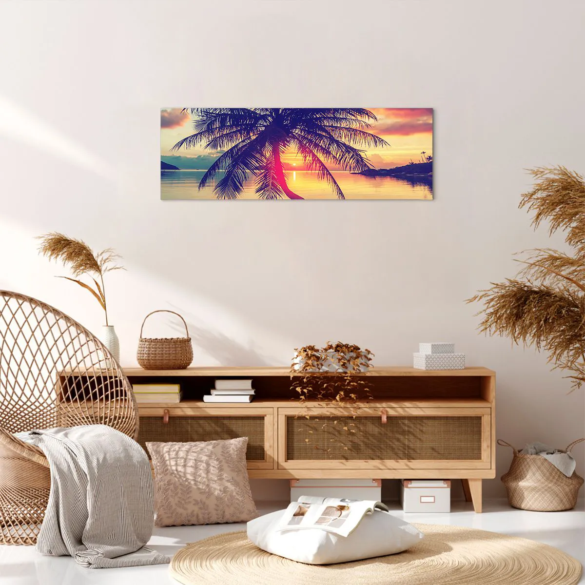 Obraz na plátne - Večer pod palmami - 90x30 cm