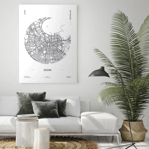 Obraz Anatómia Dohy je precízne vytvorená mapa hlavného mesta Kataru, prezentovaná vo forme čiernobielej grafiky. Kompozícia je zachovaná v minimalistickom štýle, ktorý jej dodáva moderný charakter a eleganciu.