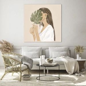 Obraz na skle - Tajomný portrét s vejárom - 40x40 cm