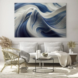 Obraz na skle - Plynulosť modrej a bielej - 160x50 cm