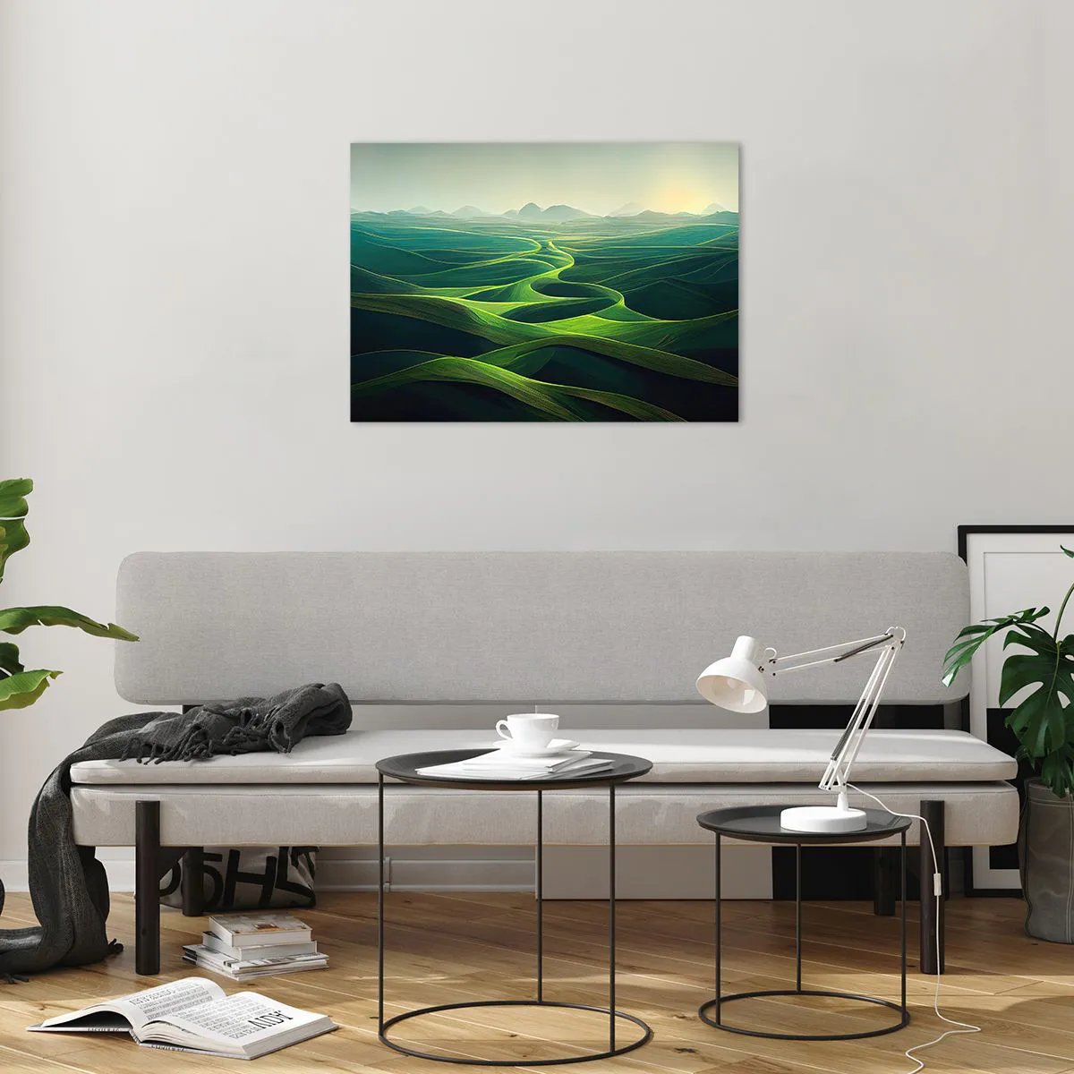 Obraz do obývačky, spálne alebo kancelárie, ktorý sa hodí do minimalistického, moderného a prírodného štýlu. „V zelených údoliach“ je dekorácia, ktorá prináša útechu a umožňuje vám oddýchnuť si od každodenného zhonu.