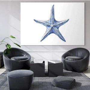 - Obraz zobrazuje modrú hviezdicu na snehobielom pozadí, namaľovanú v štýle akvarelu. Námorný motív dokonale vnáša do interiéru letnú atmosféru a jemný nádych.